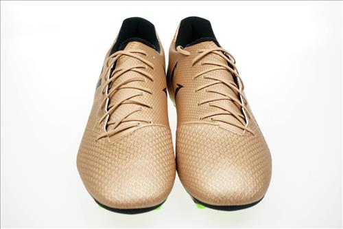 Adidas Messi 16.3 FG voetbalschoen in brons/zwart met vaste nop. Adidas schoenen hebben niet een streepje, maar drie streepjes voor als het gaat om performance trends en sportieve streetstyle. De sportschoenen-scene is een dynamisch speelveld, waar de nieuwste modellen komen en gaan. Adidas schoenen laten zien hoe je innovatie en trends kunt omarmen en trouw blijft aan je roots.