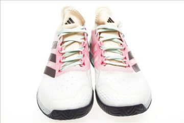 Adidas Adizero Ubersonic 4.1 M tennisschoen in lichtgrijs/roze/mintgroen.