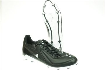 Adidas voetbalschoen in zwart/zilver leer met combinatie zool van vaste noppen en 6 aluminium schroefnoppen. Niet geschikt voor kunstgras!!