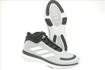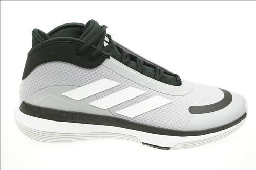Adidas Bounce Legend basketbalschoen in lichtgrijs/wit/zwart.