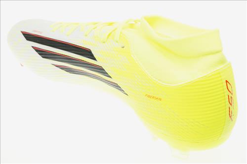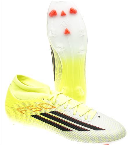 Adidas F 50 Leaque MID FG voetbalschoen met vaste nop in wit/geel/zwart. Deze schoenen zijn geschikt voor alle velden.