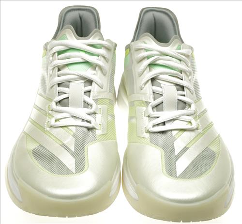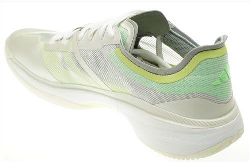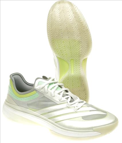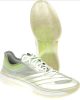 Adidas indoorschoen in metallic wit/lichtgroen combinatie.