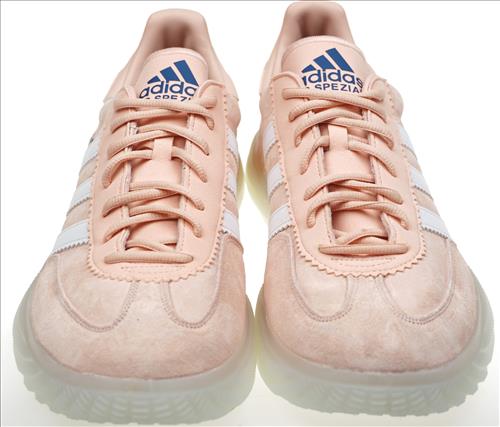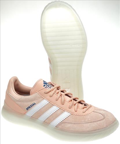 Adidas HB Spezial Pro indoorschoen in roze/wit suede.