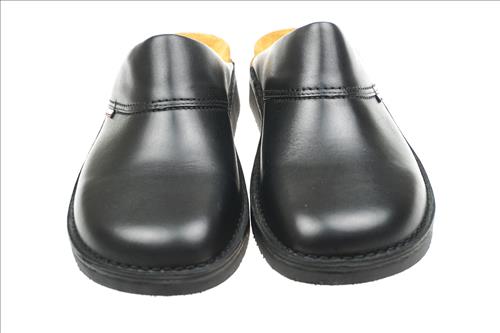 Amako 520 slipper in zwart leer. Deze slippers zijn op voorraad vanaf maat 41.