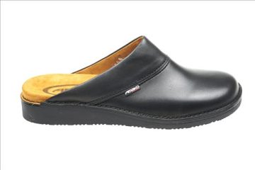 Amako 560 slipper in zwart leer. Deze slippers zijn extra breed.