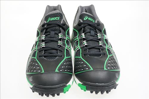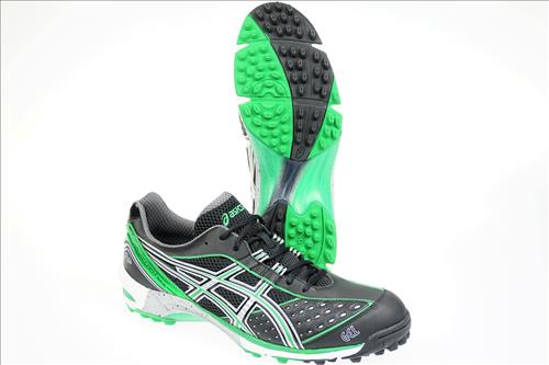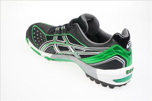 Asics hockeyschoen in zwart/groen leer. Asics schoenen behoren tot de favoriete schoenen van sporters. Dit label ontwikkelt en innoveert al zestig jaar lang om de beste kwaliteiten te vinden voor sportieve schoenen. Zeker niet zonder succes, want de Asics schoenen van tegenwoordig bezitten alle kenmerken die sporters willen terugvinden in hun stappers. Het voetbed is van de hoogste kwaliteit en gemaakt om optimaal comfort te bieden, terwijl de materialen van de schoen zijn geselecteerd op kwaliteit en flexibiliteit. De stevige zolen zorgen voor een goede grip en de vormgeving maakt de Asics schoenen opvallend en sportief. Alle Asics schoenen zijn voorzien van de lijnen die voor het merk zo kenmerkend zijn. Tot slot zijn er ook schoenen met extra kwaliteiten, als bijvoorbeeld de lichtgewicht Asics schoenen voor hardlopers en de Asics schoenen die zorgen voor extra stabiliteit. Kortom, de Asics schoenen bezitten alle kwaliteiten die sporters nodig hebben om de beste prestaties neer te zetten, om welke sport het ook gaat. Asics schoenen kunnen het hart van iedere sporter sneller doen kloppen.