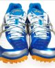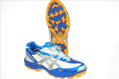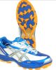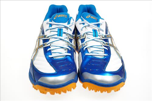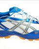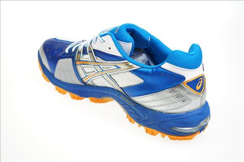 Asics hockeyschoen in wit/blauw/oranje leer/nylon. Asics schoenen behoren tot de favoriete schoenen van sporters. Dit label ontwikkelt en innoveert al zestig jaar lang om de beste kwaliteiten te vinden voor sportieve schoenen. Zeker niet zonder succes, want de Asics schoenen van tegenwoordig bezitten alle kenmerken die sporters willen terugvinden in hun stappers. Het voetbed is van de hoogste kwaliteit en gemaakt om optimaal comfort te bieden, terwijl de materialen van de schoen zijn geselecteerd op kwaliteit en flexibiliteit. De stevige zolen zorgen voor een goede grip en de vormgeving maakt de Asics schoenen opvallend en sportief. Alle Asics schoenen zijn voorzien van de lijnen die voor het merk zo kenmerkend zijn. Tot slot zijn er ook schoenen met extra kwaliteiten, als bijvoorbeeld de lichtgewicht Asics schoenen voor hardlopers en de Asics schoenen die zorgen voor extra stabiliteit. Kortom, de Asics schoenen bezitten alle kwaliteiten die sporters nodig hebben om de beste prestaties neer te zetten, om welke sport het ook gaat. Asics schoenen kunnen het hart van iedere sporter sneller doen kloppen.