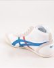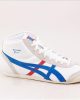 Asics Mexico Mid sneaker in wit/blauw/rood leer. Asics schoenen behoren tot de favoriete schoenen van sporters. Dit label ontwikkelt en innoveert al zestig jaar lang om de beste kwaliteiten te vinden voor sportieve schoenen. Zeker niet zonder succes, want de Asics schoenen van tegenwoordig bezitten alle kenmerken die sporters willen terugvinden in hun stappers. Het voetbed is van de hoogste kwaliteit en gemaakt om optimaal comfort te bieden, terwijl de materialen van de schoen zijn geselecteerd op kwaliteit en flexibiliteit. De stevige zolen zorgen voor een goede grip en de vormgeving maakt de Asics schoenen opvallend en sportief. Alle Asics schoenen zijn voorzien van de lijnen die voor het merk zo kenmerkend zijn. Tot slot zijn er ook schoenen met extra kwaliteiten, als bijvoorbeeld de lichtgewicht Asics schoenen voor hardlopers en de Asics schoenen die zorgen voor extra stabiliteit. Kortom, de Asics schoenen bezitten alle kwaliteiten die sporters nodig hebben om de beste prestaties neer te zetten, om welke sport het ook gaat. Asics schoenen kunnen het hart van iedere sporter sneller doen kloppen.