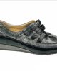 Durea klittebandschoen in zwart lak/metallic leer met uitneembaar voetbed in wijdte K.Extra breed. Durea is een merk waarbij vakmanschap centraal staat. Doordat Durea het hele productieproces in eigen beheer heeft, bent u ook verzekerd van de beste kwaliteit wanneer u Durea schoenen koopt. Dit geldt zowel voor de sandalen als voor de sneakers, maar ook voor de enkellaarsjes en pumps of ballerina’s. Al deze schoenen hebben een comfortabele pasvorm waardoor ze lekker lopen. Daarnaast is er bij elke schoen oog voor de uitstraling, zodat de schoenen van Durea er altijd mooi uitzien. Het motto van Durea is ‘’uit liefde voor je voeten’’ en dat merk je aan alles. Zo wordt er bij Durea schoenen rekening gehouden met de breedte van uw voet.