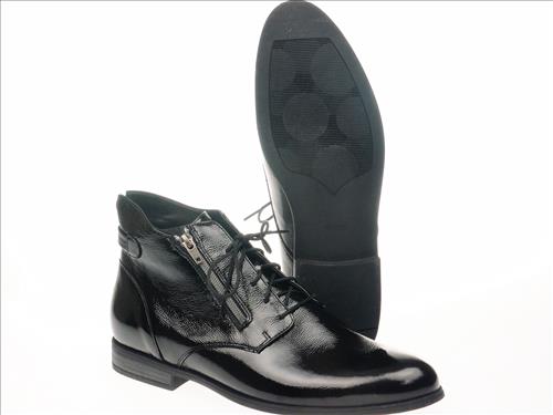 Durea 9697 veterboot in zwart lak leer. Deze schoenen zijn verkrijgbaar vanaf maat 37. Durea is een merk waarbij vakmanschap centraal staat. Doordat Durea het hele productieproces in eigen beheer heeft, bent u ook verzekerd van de beste kwaliteit wanneer u Durea schoenen koopt. Dit geldt zowel voor de sandalen als voor de sneakers, maar ook voor de enkellaarsjes en pumps of ballerina’s. Al deze schoenen hebben een comfortabele pasvorm waardoor ze lekker lopen. Daarnaast is er bij elke schoen oog voor de uitstraling, zodat de schoenen van Durea er altijd mooi uitzien. Het motto van Durea is ‘’uit liefde voor je voeten’’ en dat merk je aan alles. Zo wordt er bij Durea schoenen rekening gehouden met de breedte van uw voet.