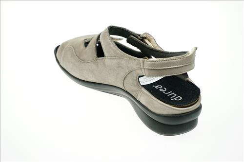 Durea 7389 sandaal in taupe leer met verstelbare sluiting. Deze sandalen zijn verkrijgbaar vanaf maat 37. Durea is een merk waarbij vakmanschap centraal staat. Doordat Durea het hele productieproces in eigen beheer heeft, bent u ook verzekerd van de beste kwaliteit wanneer u Durea schoenen koopt. Dit geldt zowel voor de sandalen als voor de sneakers, maar ook voor de enkellaarsjes en pumps of ballerina’s. Al deze schoenen hebben een comfortabele pasvorm waardoor ze lekker lopen. Daarnaast is er bij elke schoen oog voor de uitstraling, zodat de schoenen van Durea er altijd mooi uitzien. Het motto van Durea is ‘’uit liefde voor je voeten’’ en dat merk je aan alles. Zo wordt er bij Durea schoenen rekening gehouden met de breedte van uw voet.