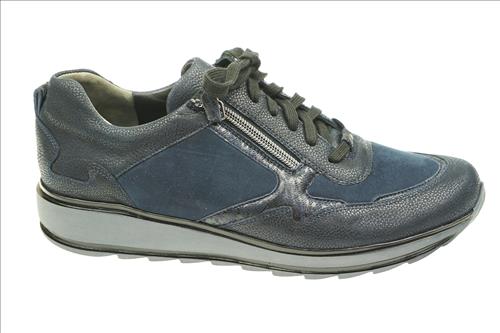 Durea sneaker in donkerblauw leer/ stretchsuede. Deze sneakers zijn op voorraad vanaf maat 37.