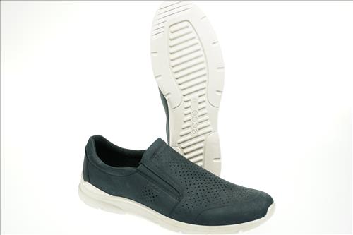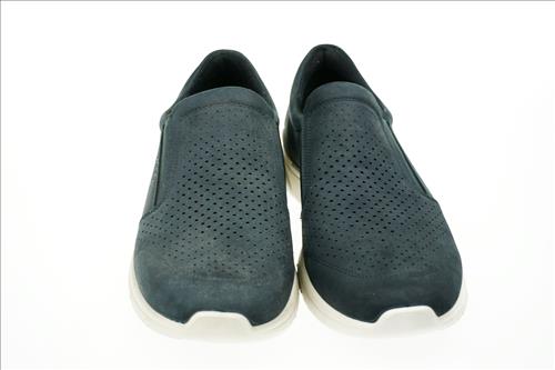 Ecco Irving instapper in blauw nubuck. De modellen van Ecco staan al jaren bekend als zeer comfortabele en kwalitatieve schoenen. Het van oorsprong Scandinavische merk heeft een duidelijke filosofie: alles begint bij de voet. Doordat ze alles over de voet weten, is het mogelijk de meest comfortabele schoen ter wereld te maken! Over de hele wereld zoekt Ecco naar de beste materialen voor een perfect evenwicht tussen ouderwets vakmanschap en high-tech innovatie. Het merk houdt het volledige schoenmakers proces in eigen beheer waardoor er een eerlijk product ontstaat.