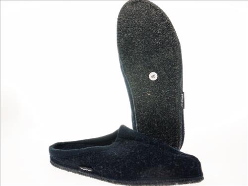 Fischer pantoffel in donkerblauw wol/vilt. Wasbaar tot 30 graden.