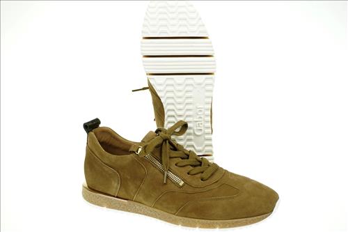 Gabor 73.410.11 sneaker in kakhi suede. Gabor is een Duits merk, gevestigd in Rosenheim, dat kwalitatief hoogwaardige, modieuze damesschoenen maakt voor een scherpe prijs. Het bedrijf bestaat sinds 1949 en is begonnen door Bernhard en Joachim Gabor, die schoenen wilden maken voor iedereen. De pasvorm en kwaliteit van Gabor vallen daarbij altijd op. Het familiebedrijf Gabor bestaat al ruim 60 jaar en wordt door de 2e generatie geleid.