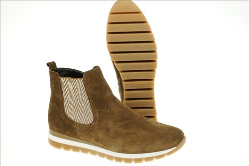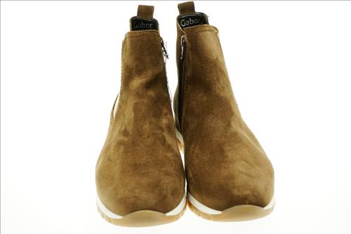 Gabor laarsje in bruin suede. Gabor is een Duits merk, gevestigd in Rosenheim, dat kwalitatief hoogwaardige, modieuze damesschoenen maakt voor een scherpe prijs. Het bedrijf bestaat sinds 1949 en is begonnen door Bernhard en Joachim Gabor, die schoenen wilden maken voor iedereen. De pasvorm en kwaliteit van Gabor vallen daarbij altijd op. Het familiebedrijf Gabor bestaat al ruim 60 jaar en wordt door de 2e generatie geleid.