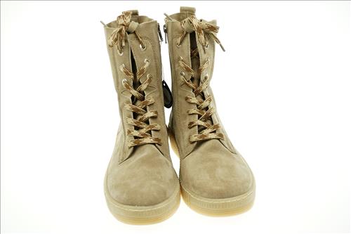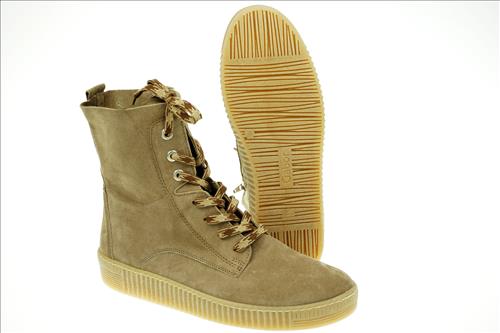 Gabor veterboot in zand suede. Gabor is een Duits merk, gevestigd in Rosenheim, dat kwalitatief hoogwaardige, modieuze damesschoenen maakt voor een scherpe prijs. Het bedrijf bestaat sinds 1949 en is begonnen door Bernhard en Joachim Gabor, die schoenen wilden maken voor iedereen. De pasvorm en kwaliteit van Gabor vallen daarbij altijd op. Het familiebedrijf Gabor bestaat al ruim 60 jaar en wordt door de 2e generatie geleid.