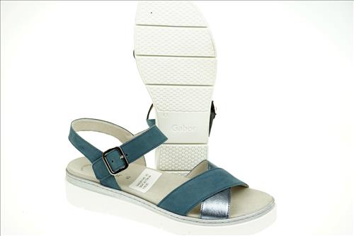 Gabor sandaal in lichtblauw nubuck met verstelbare sluiting.