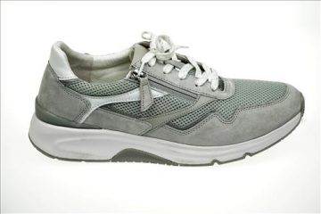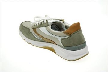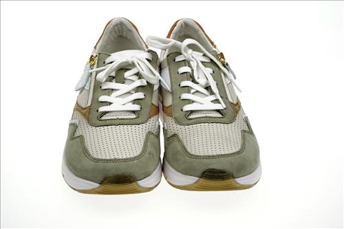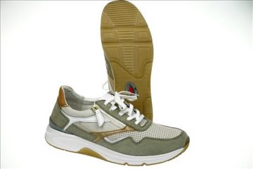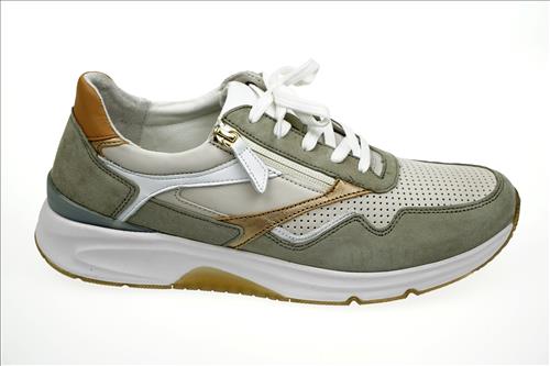 Gabor Rolling Soft sneaker in creme/zachtgroen leer.