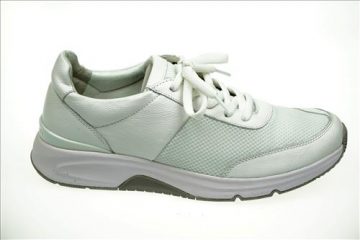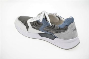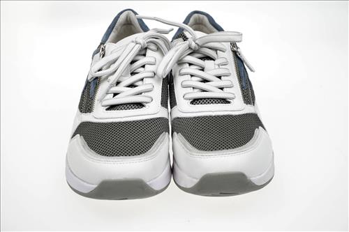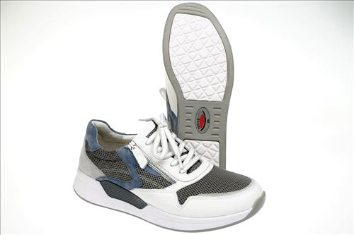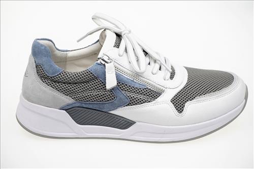 Gabor Rolling Soft sneaker in wit/grijs/lichtblauw leer/nylon.