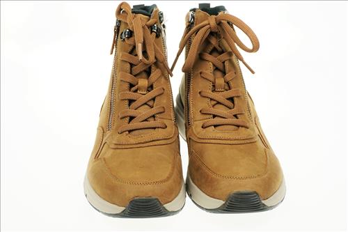 Gabor Rolling Soft veterboot in cognac nubuck. Deze schoenen zijn verkrijgbaar vanaf maat 37.