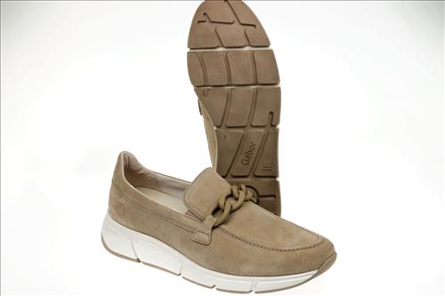 Gabor instapper in beige suede. Deze schoenen zijn verkrijgbaar vanaf maat 37.