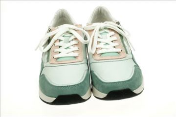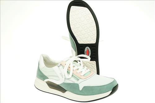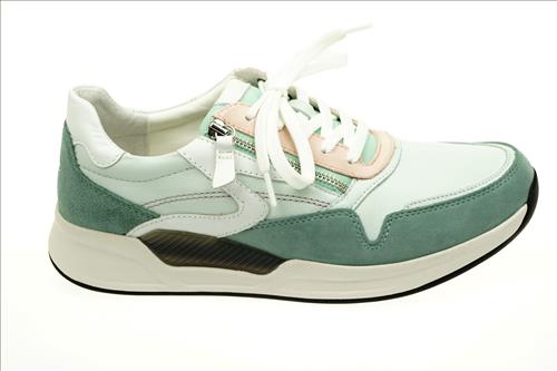Gabor Rolling Soft sneaker in mintgroen/roze leer. Deze schoenen zijn verkrijgbaar vanaf maat 37.