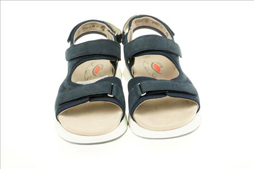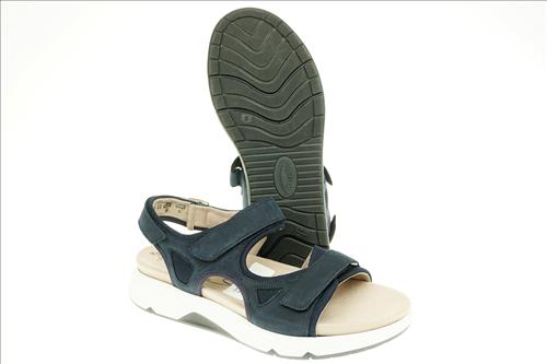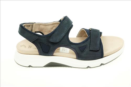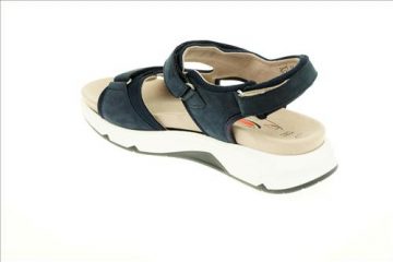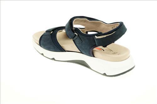 Gabor Rolling Soft sandaal in blauw nubuck met verstelbare sluiting.