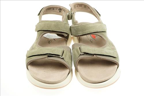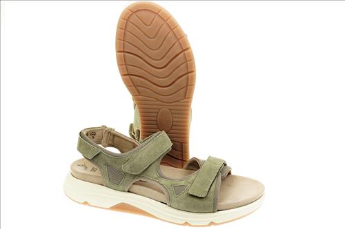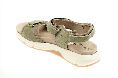 Gabor Rolling Soft sandaal in zacht groen suede met verstelbare sluiting.