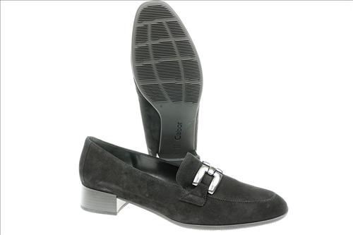 Gabor pump in zwart suede met gesp. Deze schoenen zijn verkrijgbaar vanaf maat 37.