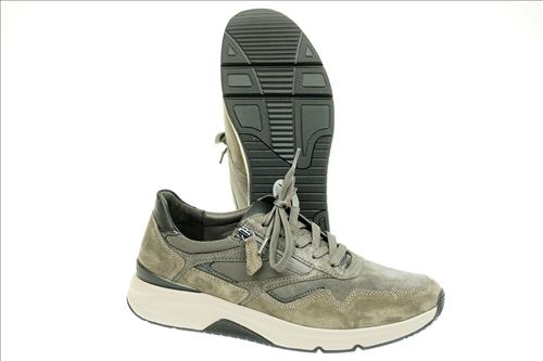 Gabor Rolling Soft sneaker in taupe suede. De nieuwe beleving van bewegen is de Rollingsoft schoenen van Gabor. De innovatieve vrijetijdsschoen voor fitness, wellness en welzijn! De voordelen van een afwikkelschoen gecombineerd met de bijzonder flexibele zool.