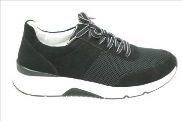 Gabor Rolling Soft sneaker in taupe nubuck/nylon.