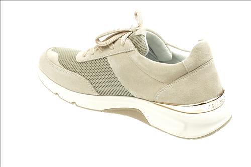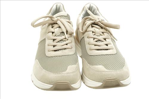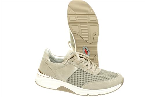 Gabor Rolling Soft sneaker in taupe nubuck/nylon.