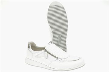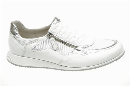 Gabor schoen in wit/zilver leer/nylon met ritssluiting. Deze schoenen zijn op voorraad vanaf maat 37.