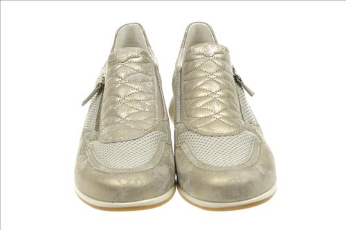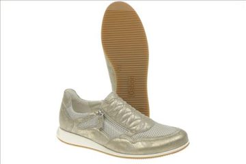 Gabor schoen in brons leer/nylon met ritssluiting. Deze schoenen zijn op voorraad vanaf maat 37.