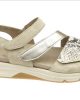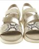 Gabor Rolling Soft sandaal in taupe/brons nubuck met verstelbare sluiting. Deze schoenen zijn op voorraad vanaf maat 37.