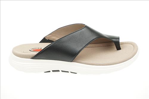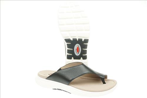 Gabor Rolling Soft teenslipper in zwart leer. Deze slippers zijn op voorraad vanaf maat 37.
