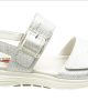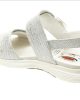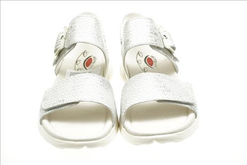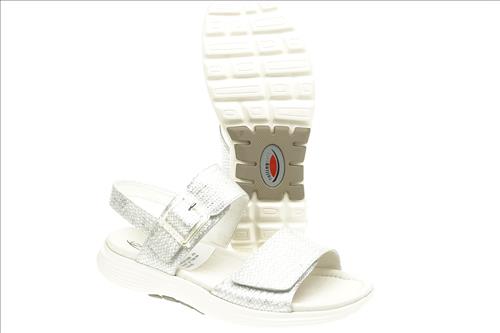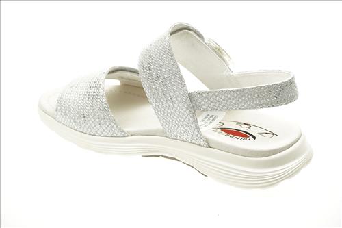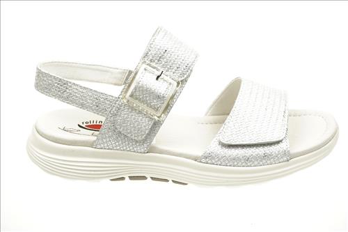 Gabor Rolling Soft sandaal in zilver leer met verstelbare sluiting. Deze sandalen zijn op voorraad vanaf maat 37.