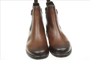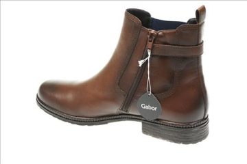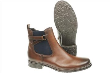 Gabor laarsje in bruin leer met donkerblauw elastiek.