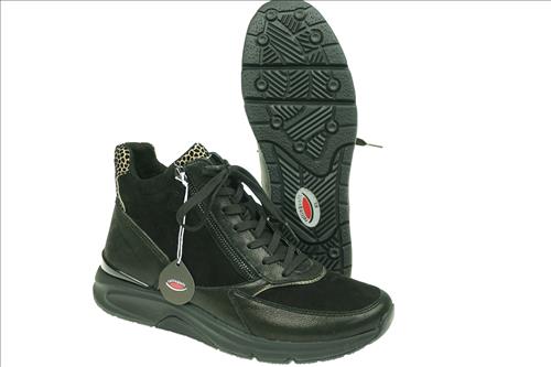 Gabor Rolling Soft veterboot in zwart/leer/nubuck combinatie. Deze schoenen zijn op voorraad vanaf maat 37.