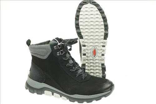 Gabor Rolling Soft veterboot in zwart nubuck. Gabor is een Duits merk, gevestigd in Rosenheim, dat kwalitatief hoogwaardige, modieuze damesschoenen maakt voor een scherpe prijs. Het bedrijf bestaat sinds 1949 en is begonnen door Bernhard en Joachim Gabor, die schoenen wilden maken voor iedereen. De pasvorm en kwaliteit van Gabor vallen daarbij altijd op. Het familiebedrijf Gabor bestaat al ruim 60 jaar en wordt door de 2e generatie geleid.