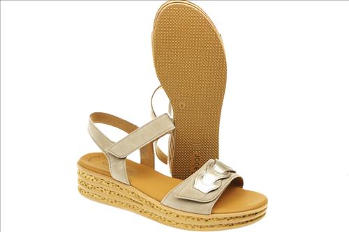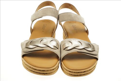 Gabor sandaal in taupe/brons suede met verstelbare sluiting. Deze sandalen zijn op voorraad vanaf maat 37.