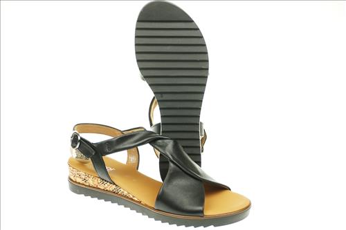 Gabor sandaal in zwart leer met verstelbare sluiting. Deze sandalen zijn op voorraad vanaf maat 37.