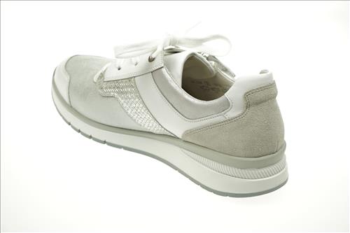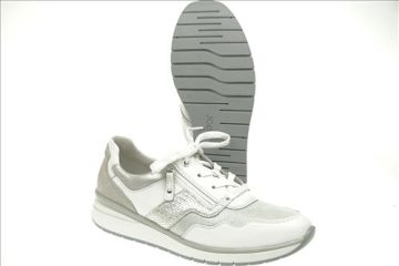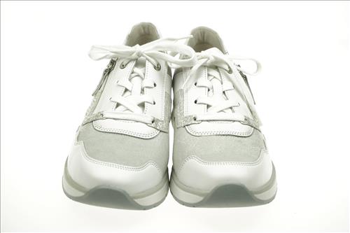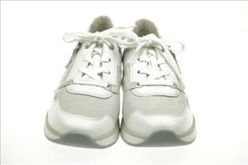 Gabor sneaker in wit/zilver leer/stretchleer. Deze schoenen zijn op voorraad vanaf maat 37.
