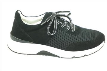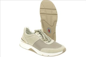 Gabor Rolling Soft sneaker in beige suede/nylon.