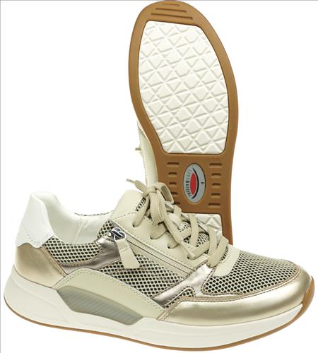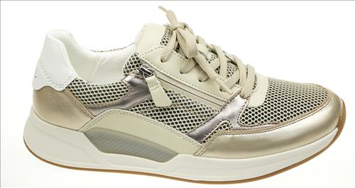 Gabor Rolling Soft sneaker in brons/beige combinatie. Deze sneakers zijn op voorraad vanaf maat 37.