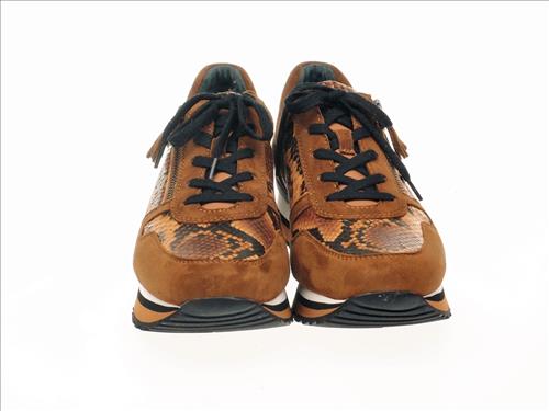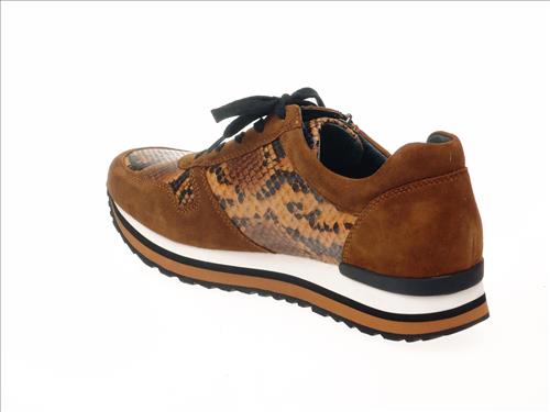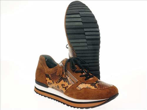 Gabor vetersneaker in cognac/python nubuck. Deze schoenen zijn verkrijgbaar vanaf maat 37.
