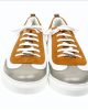 Gino-B sneaker in wit/grijs/cognac leer.