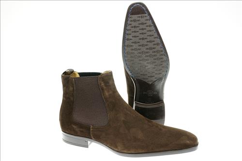 Giorgio chelsea boot in donkerbruin suede. Het Giorgio verhaal begint in 1958 in een kleine fabriek in Italië. Op deze locatie begon het bedrijf met de creatie en verkoop van klassieke heren schoenen. Over de tijd is Giorgio uitgegroeid tot een prestigieus merk dat bekend staat om zijn unieke, kwalitatieve, innovatieve en comfortabele schoenen. Opvallend aan de Giorgio collectie is dat deze specifiek is afgestemd op de Nederlandse markt, waar het merk zijn grootste successen behaalt. Dit resulteert in een verfijnde maar ook opvallende collectie. Dankzij opvallende prints en accenten zoals slangenprint, gespen en brogue patronen weet het schoenenmerk hoe het zich moet onderscheiden. Ben jij toe aan een paar unieke schoenen die jouw persoonlijke stijl goed tot zijn recht laten komen? Dan is de Giorgio 1958 schoenencollectie echt wat voor jou!