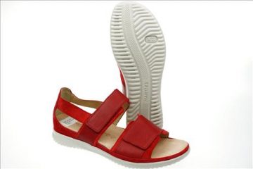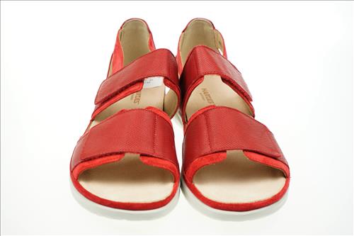 Hartjes sandaal in rood leer met verstelbare sluiting.